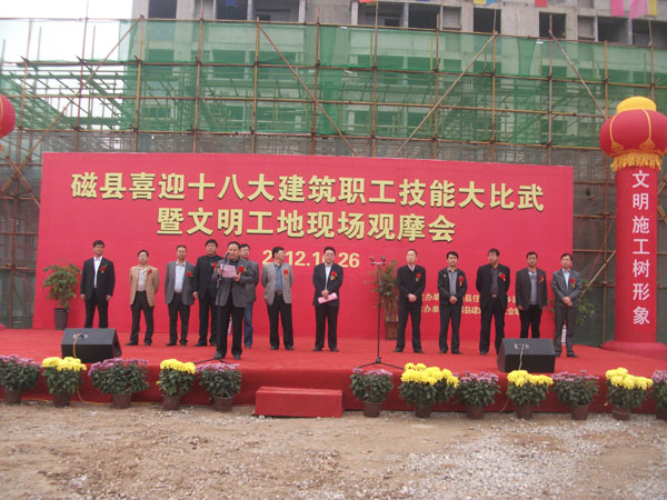 今年3月6日,磁縣住建局副局長趙志彬帶領質(zhì)量、安全監(jiān)督部門到項目部進行檢查指導,對形象策劃、現(xiàn)場布置、場容場貌等方面給予了很高的評價,并確定將該項目作為轄區(qū)建設工地的標桿。對此工程公司十分重視,加大了安全文明施工投入力度,嚴格按照國家AAA級文明工地的標準進行常規(guī)管理,本項目現(xiàn)已在磁縣成為亮點工程,取得了良好的社會效應。