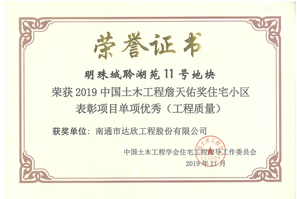 項目在建設過程中,公司領導班子帶領項目員工齊心協(xié)力,以打造高品質(zhì)住宅、一流住區(qū)環(huán)境為宗旨,注重工程創(chuàng)優(yōu)工作,通過精心組織、科學施工,確保了施工過程安全文明,鑄就了卓越的工程品質(zhì)。先后獲得“蘇州市姑蘇杯”、“江蘇省建筑施工標準化文明示范工地”等榮譽稱號。