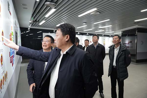 于立忠等領(lǐng)導(dǎo)參觀了企業(yè)展示中心、馬和軍勞模創(chuàng)新工作室黨支部,觀看了達(dá)欣集團(tuán)“紅旗鐵軍”專題片,了解了集團(tuán)在黨員管理工作方面“實(shí)施項(xiàng)目化管理,樹達(dá)欣黨建鐵軍品牌”的特色做法。在企業(yè)展示中心,于立忠系統(tǒng)了解了企業(yè)40多年來的發(fā)展歷程和集團(tuán)黨委開展的四項(xiàng)融合、四微黨建、三項(xiàng)目標(biāo)的“四四三”黨建工作法,以及具有達(dá)欣特色的“工地黨旗美如畫”黨建工作。