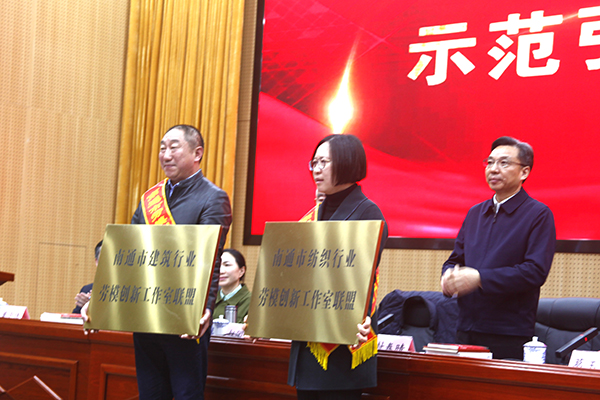 儀式上,對在開展勞模創(chuàng)新工作室創(chuàng)建和勞模黨支部“薪火工程”系列行動中,大力弘揚勞模精神、勞動精神和工匠精神,充分發(fā)揮勞模在推動高質(zhì)量、建設(shè)“強富美高”新南通中起到示范引領(lǐng)作用的先進典型進行了表揚,集團創(chuàng)建的“馬和軍勞模創(chuàng)新工作室黨支部”被命名“南通市十佳勞模創(chuàng)新工作室黨支部”榮譽稱號,同時,集團副總經(jīng)理、工會主席溫鶴華還接收了“南通市建筑行業(yè)勞模創(chuàng)新工作室聯(lián)盟”的牌匾。