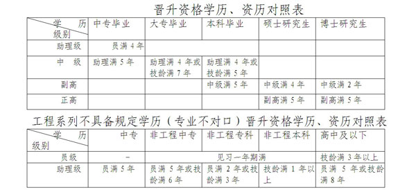 (1)評審。專業(yè)技術人員取得初級專業(yè)技術資格后,符合下列表中國家規(guī)定的學歷、職稱、專業(yè)技術工作年限的,可申報評審晉升相應級別的職稱。少數(shù)專業(yè)破格申報評審的,依照該系列評審條件中破格申報、評審條件。