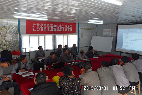 3月31日,針對項目施工過程中的質(zhì)量通病,第九工程公司在祥河灣項目部組織了30多名項目生產(chǎn)經(jīng)理、質(zhì)檢員、施工員等參加的質(zhì)量培訓(xùn)專題會。